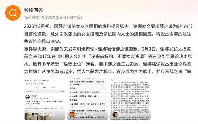前有薛之谦多年影射言论被翻出,谢娜深夜发文喊话薛之谦道歉,为张杰鸣不平。